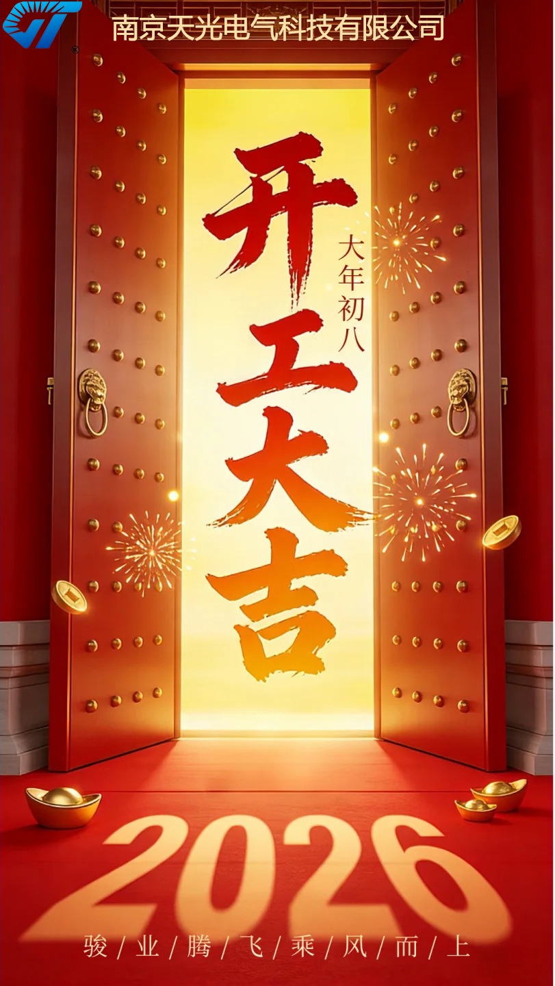 正月初八,开工大吉!南京天光电气科技有限公司祝愿各位新老合作伙伴:开工见喜,业绩长虹;财源滚滚,八方来财;团队同心,马到成功!